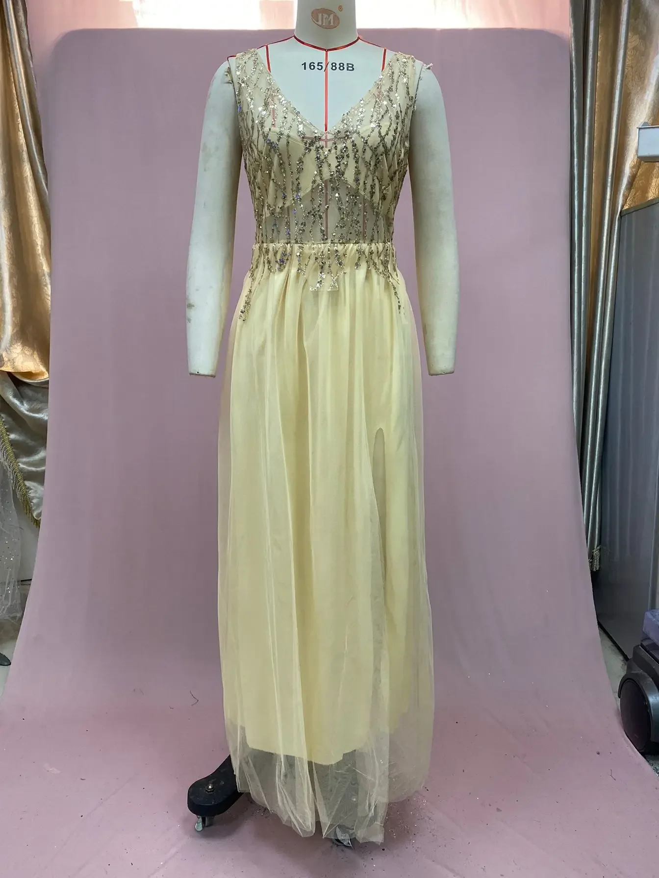 • Patchwork dourado com decote em V:O detalhe dourado com decote em V acrescenta um toque de elegância e sofisticação, tornando este vestido uma escolha perfeita para eventos formais.
